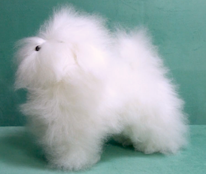 | 【被毛がときほぐれた状態のモデル犬】 ====== スリッカーとコームで根元からしっかりとときほぐれた状態で、全体的にふわふわになっています。 指で被毛の根元をかき分けてみても、一本一本がバラバラになっているのが理想です。 この状態になったらカットに進みましょう! |